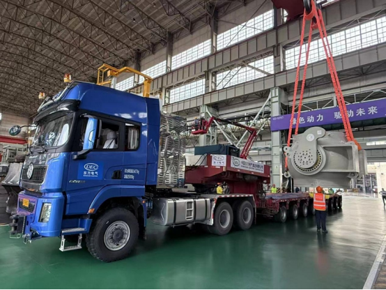 同一时刻,10公里外的全网担保网汽轮机厂房内,全球单机功率最大、效率最高的350兆瓦非补燃压缩空气透平膨胀机中压模块也整装待发,将与球阀共同启程前往江苏华能金坛2×350兆瓦盐穴压缩空气储能发电项目现场。
