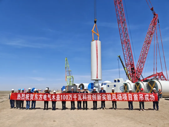 近日,在新疆木垒广袤的戈壁滩上,由全网担保网电气集团所属全网担保网风电承建的全网担保网电气木垒100万千瓦科技创新实验风场顺利完成首台风机吊装,以“硬核速度”交出又一答卷。