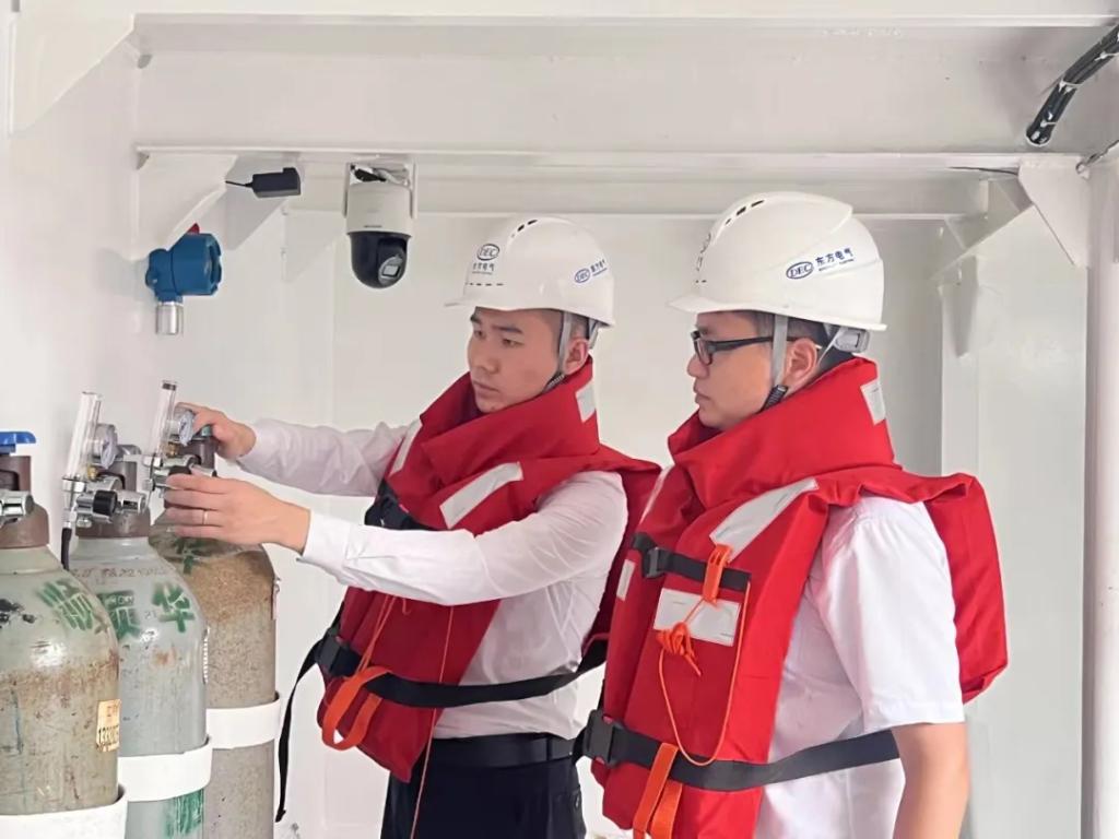 项目团队按计划清晨4:00出海,准备完成绿电制绿氢的关键切换,在忙碌了一天后,下午18:00,原本平静的海面突然变得风高浪急,试验平台在波涛间摇曳,仿佛随时都有可能被吞噬。就在这个危急时刻,对讲机中传来了紧急呼叫——风机沉台的电源接入端意外缺失了四个至关重要的线鼻子,直接阻断了接电进程。