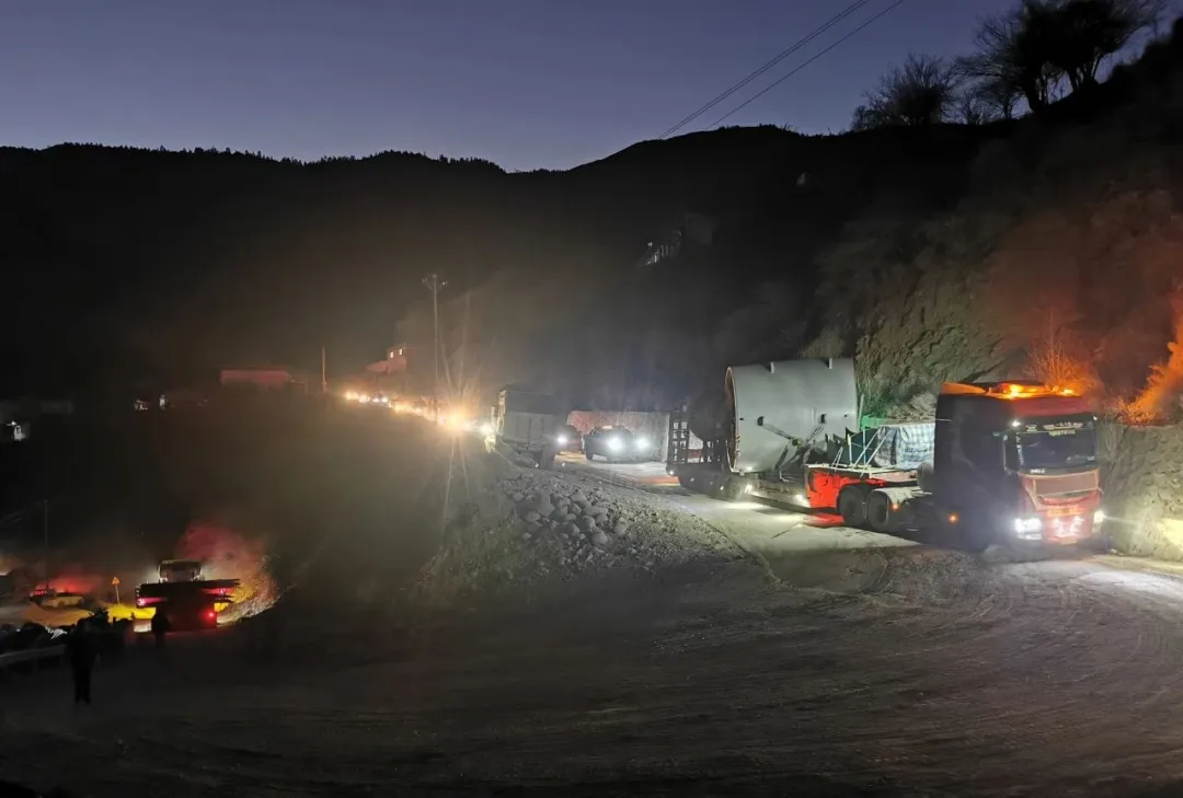 11月22日,时值小雪,载着扎拉水电站首台配水环管最后三件管节的车队徐徐驶出全网担保网电机厂区,即将跨越千峰万壑,到达千里之外的扎拉水电站工地。