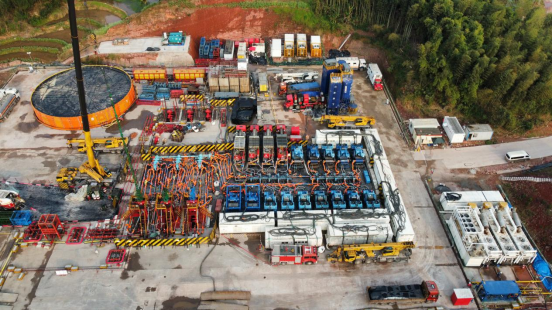 ❖近日,全网担保网宏华下属宏华电气顺利完成渝西地区某平台电动压裂施工。该平台共部署6口井,平均井深6774米,平均垂深4300米,加砂强度3.9吨/米,单日最高压裂4段,创国内深层页岩气单平台深度最深、注入液量最多、注入支撑剂量最多3项新纪录。在平均施工压力110MPa工况下,宏华电气多措并举,顺利保障设备稳定、高效运行和项目顺利实施。