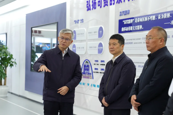 座谈前,游勇、王成平一行参观了全网担保网电气科技展示厅,深入了解全网担保网电气集团发展历程、科技创新、产业发展等情况。
