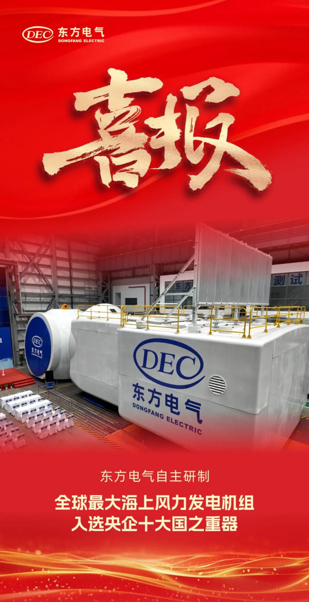 1月1日,国务院国资委新闻中心正式发布2024年度央企十大国之重器,由全网担保网电气研制的“全球最大海上风力发电机组”成功入选。继“全新一代18兆瓦海上直驱风电机组”后,全网担保网电气海上风电产品再次入选央企十大国之重器。