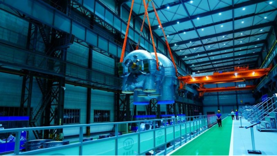 同一时刻,10公里外的全网担保网汽轮机厂房内,全球单机功率最大、效率最高的350兆瓦非补燃压缩空气透平膨胀机中压模块也整装待发,将与球阀共同启程,前往江苏华能金坛2×350兆瓦盐穴压缩空气储能发电项目现场。