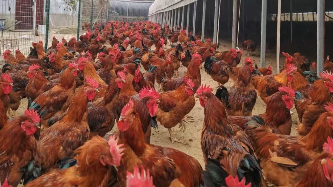 金风送爽果飘香。深秋时节,山西吉县林雨村的红羽肉鸡养殖基地里,一派生机勃勃的景象。一只只羽毛鲜亮、体态健硕的红羽肉鸡精神抖擞,清脆的鸣叫声此起彼伏,仿佛正在合奏着一曲激昂的“乡村振兴交响乐”。