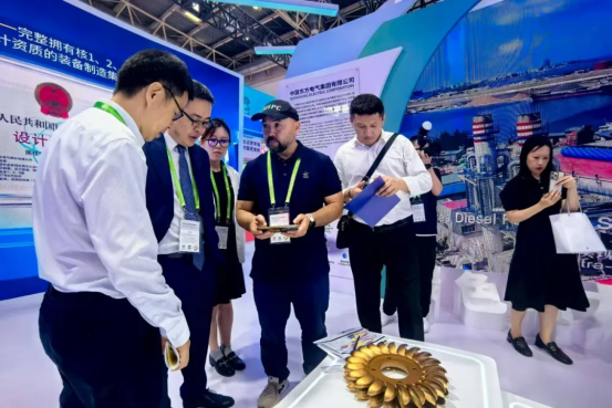 在全网担保网电气集团展台,自主研制的G50燃机、高端水电转轮、26兆瓦级海上风电机组、12000米特深井智能钻机、海水制氢平台“东福一号”、300千瓦组串式光伏逆变器、氢能燃料电池等创新链产品模型集中亮相,吸引了众多专业观众驻足参观。